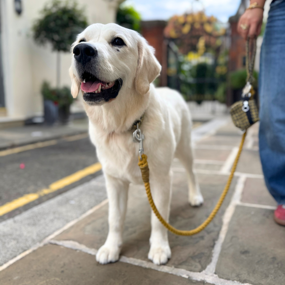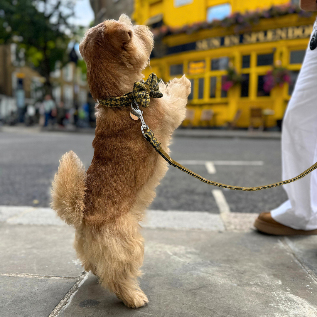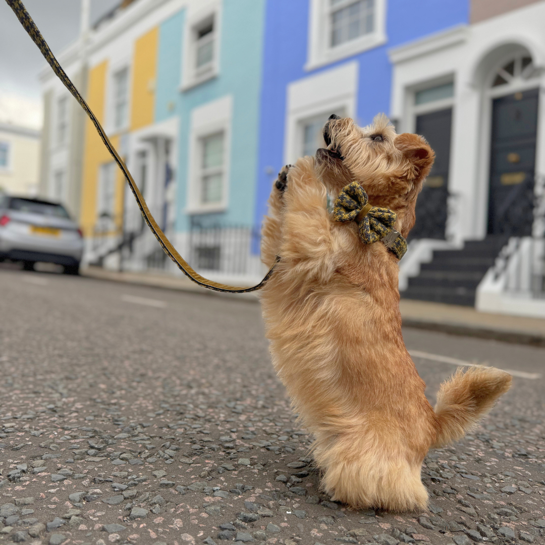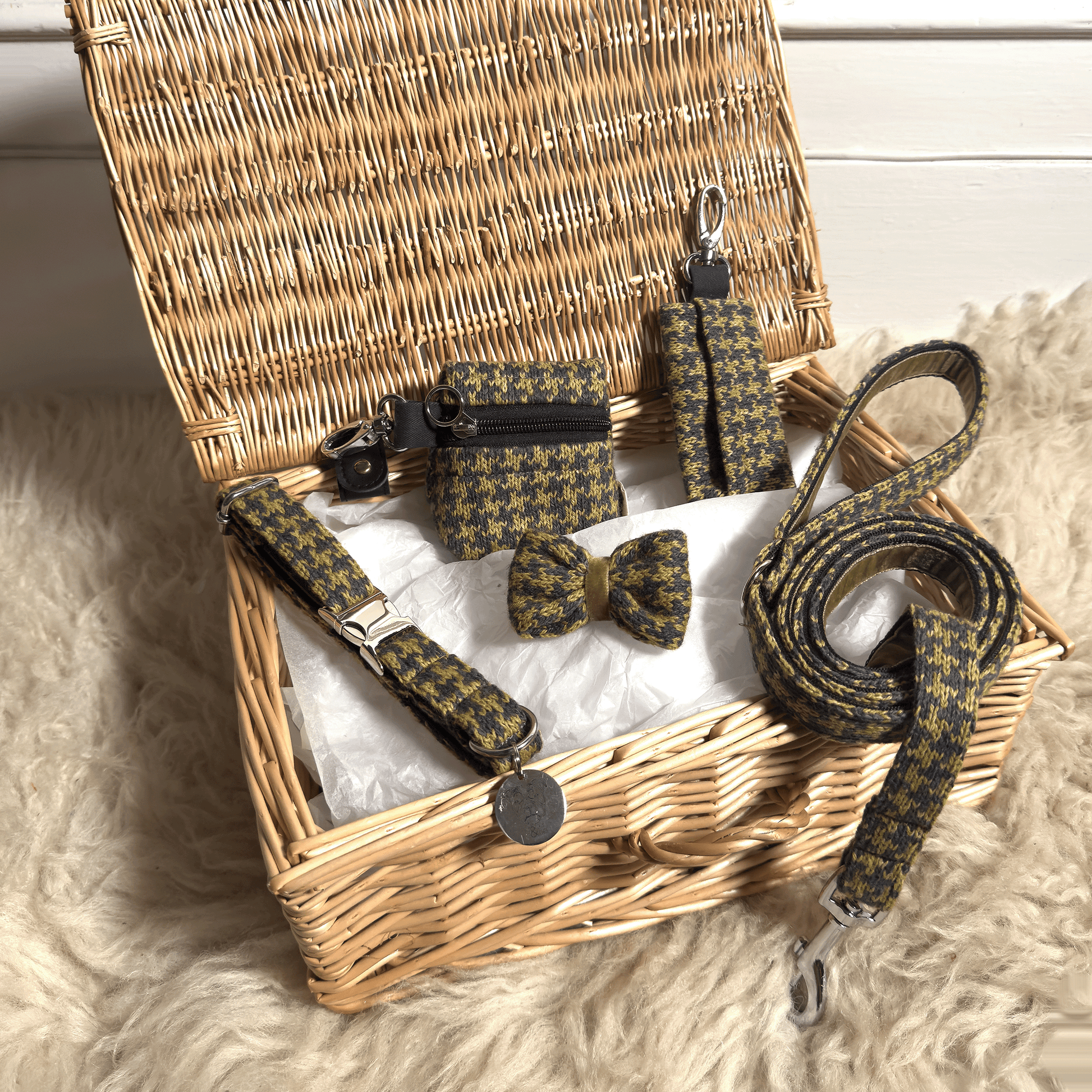 Give the perfect gift to your dog this Christmas with our new bespoke hampers! Featuring a quality, custom hamper and a range of handcrafted pieces in the Richmond design. A timeless combo of mustard & charcoal yarn, Stainless Steel fittings and a custom finishes on the Bow Tie and Hamper it's the ultimate festive gift for your pup.